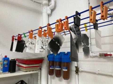 En este espacio podrás realizar tus trabajos personales con las técnicas químicas tradicionales, como revelado y positivado de negativos en blanco y negro, estenopeica y cianotipia.
